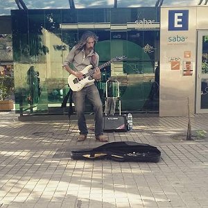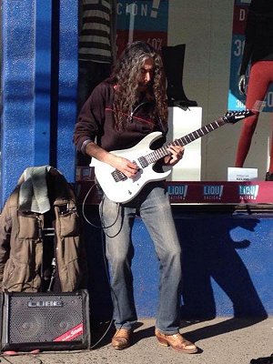 Sé que tocas tus propios temas, háblame de tu producción musical, de tu declaración de principios respecto a la música.Mi producción es antigua, son 10 temas que hice hace 16 años atrás y seguro que hay ideas anteriores...y que no se ha grabado todavía. Jajaja ¿mi declaración de principios? eso fue hace muchos años atrás cuando era un cabro chico...ahora toco lo que me nace, sea rock, blues o jazz, sólo me dedico a disfrutar, siento que perfectamente podría hacer un disco 100% Rockero y a la vez uno lleno de baladas románticas, no tengo problemas con el que dirán...si nace Death Metal bien y si es Gospel bien también. Cuéntame un poco de tu relación con la policía y el tema de los permisos en la calle Mi relación con la policía es bastante buena, han sido contadas con los dedos de la mano las veces que he tenido que levantar mis cosas y cuando lo hacen es de una manera súper amable, algo que nunca imaginé podría pasar, están mucho más tolerantes y en regiones ni pescan. El otro día me contaste que vuelves a visitar a tu ex trabajo ¿cómo es eso? El dueño es amigo mío y yo comencé a trabajar con él cuando la empresa éramos cinco personas y haber terminado con más de treinta y oficina propia en providencia, me hizo tomarle cariño a lo que yo ayudé durante ocho años a sacar adelante, además que quedaron amigos ahí dentro y ya que en ocasiones estoy cerca...unos minutos de convivencia no le hacen mal a nadie...además que gracias a haber estado trabajando ahí fui alguien para el banco y pude pedir un crédito y comprarme un departamento...así qué también le estoy muy agradecido. Háblame un poco de tus sentimientos hoy, ¿te sientes más sano, más feliz, estás arrepentido? Hoy me siento el hombre más feliz del mundo, libre, sano, liberado de todas las ataduras de un sistema perverso que te ciega y no te permite ver que eres un esclavo sin vida propia, no es posible que uno vea más a sus compañeros de trabajo que a tu propia familia, y por muchas cosas más, no estoy arrepentido, creo que ha sido lo mejor que he hecho por mi vida, ahora estoy cumpliendo los sueños que siempre tuve desde niño. ¿Cómo te podemos ayudar? Ya lo están haciendo, el hecho de subir las fotos y vídeos que me hacen a las redes sociales me ayuda mucho a la difusión y muchas personas se están enterando de mi aventura y eso ayuda a que te tiendan la mano cuando pasas por sus ciudades, desde alojamiento hasta que los locales te conozcan y quieran tenerte en sus escenarios....ahora bien, si me quieren ayudar deben estar atentos a mis redes porque voy a levantar un Crowdfounding para recolectar dinero y poder mejorar la calidad del documental, así viajo más tranquilo y me puedo preocupar más de buscar otros talentos callejeros, en vez de buscar la mejor esquina para hacer dinero, si bien nunca dejaré te tocar en la calle para financiar mi aventura, dedicarle tiempo a una buena producción audio visual requiere de tiempo y hay días que no podré tocar, pero hay que seguir comiendo. | ||||||||||