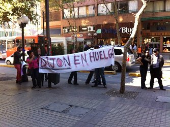San Vicente, 14 de abril de 2015. Relato de una Trabajadora de Dijon en Huelga por Jorge Guesalaga Al inicio de la Huelga de Dijon (ABC Din), hicimos contacto con una Trabajadora de San Vicente llamada Alejandra. Luego nos conocimos en Santiago cuando vinieron a manifestarse a las oficinas de Providencia y estuvimos en contacto durante estos 21 días que duró la movilización. En nuestra opinión ella representa a muchos trabajadores que sufren hoy en día la opresión de un empresario violento e inescrupuloso, por lo que le pedimos que nos relatara su experiencia de estar 21 días en Huelga hoy en día en Chile, bajo estas leyes, en esta realidad. Los siguientes párrafos es su relato: “Tengo 35 años y soy madre de dos hermosos niños, Damián de 14 y Benjamín de 5. Necesitaba trabajar urgentemente hace dos años porque mi pareja me dejó cuando nos fuimos a vivir donde mi madre, que vive en las afueras de san Vicente de TT. Como era cliente de Dijon, ya me conocían y necesitaban un part-time para la sección Escolar, y entré, y luego de un tiempo me contrataron indefinidamente. Nunca pensé que literalmente viviría en la tienda, como no puedo devolverme a casa en mi hora de colación debo quedarme ahí en la ciudad, o sea, todo el día fuera de la casa. El año pasado me dio una crisis de angustia, fui al médico y me dieron licencia médica y me derivaron al psicólogo, y todo esto por una negligencia de mi jefe porque tuve un accidente laboral, me esguince mi mano, y no me dejo ir a la Mutual. De ahí mi relación con mi jefe y mi trabajo y mi sueldo fue decayendo. Me frustré, y eso que yo era su mano derecha, me desilusionó. Cuando me enteré del sindicato fui a firmar al día siguiente, porque pensé que esto se podía arreglar, que ya podríamos soñar con un sueldo y comisiones, eso que nos prometieron cuando llegó el nuevo contrato, pero no pasó nada. Estos 19 días en huelga me he dado cuenta lo fuerte y débil que son algunas de mis compañeras, como algunas me sorprendieron, y pensar que paso más tiempo con ellas que con mi familia. Historias y vidas distintas, de esfuerzo y de garra. Llegábamos todos los días de 9:20 hasta las 13:00 y de 15:00 a 19:00 los primeros días de huelga, y luego hasta las 17:00. A meter bulla, hacernos escuchar, a que supieran de nosotras, hasta que llego el día 16 de la huelga y todo cambió. Abrieron la tienda y me enterraron un cuchillo por la espalda, no sabía qué hacer, porque no estábamos informadas de que podían abrir y contratar personal nuevo. Eso me tiró al suelo, se me vino el mundo encima, no sabía cómo explicar a mis colegas que esto era legal, y propuestas no llegaban y las deudas en mi mente y en las de las demás se hicieron más pesadas, ese día fue fatal, me sentí pisoteada, no supe qué decir ni qué hacer. Fue muy reconfortante hablar contigo ese día, la paz y el cable a tierra me dejó confiada en dar ánimo y explicaciones a mis colegas. Cada día que pasaba fui contando en mi casa, las injusticias y nulo contacto que la empresa tenía con nosotras. Mi familia empezó a llenarse de dudas e incertidumbre, hasta el día 15 que mi madre (sub-oficial en retiro de carabineros) me habló y me dijo lo importante que estábamos haciendo, el precedente que marcaríamos y que no podíamos rendirnos. Y así empezó esto de nuevo, a recargar energías y leer reportajes de huelgas en otras empresas y me di cuenta que no estaba sola, y como soy una amiga y fanática de Twitter, donde los conocí a ustedes. A mucha gente les hice leer nuestros días en huelga y empezó aparecer mucha gente. Pero ayer fue fantástico, me dediqué tres horas a escribirle a cada uno de los más seguidos para que me RT y fue fantástico, aparecieron sindicatos de todo Chile brindando su apoyo. Cosa que me hizo muy bien. Twitter es mi mundo paralelo. Debía decirlo. Uno de mis tuit fue el más mencionado en Chile. O sea muchas personas se enteraban de la horrible y burlesca propuesta que la gerencia de Dijon nos hacía. Este es mi salida de escape. Aquí me siento escuchada y entendida. Ayer cuando llegó la propuesta, les envíe un mensaje a mis compañeras donde les daba las gracias por haber asistido todos los días, el conocerlas mejor, estoy orgullosa de que duraran tanto sin recibir dinero y estar afuera gritando, metiendo bulla, y no estar en casa con los suyos. Me gustaría que las leyes laborales sean pensadas en nosotras, en personas que debemos sobrevivir con miserables sueldos, trabajando días domingos y días festivos por $225,000. Las empresas juegan al límite, sin importar lo que afecte a los trabajadores. Si tuviera al dueño de mi empresa sólo le diría que si me pagara mejor, yo sería una mejor vendedora, ese sería un buen incentivo. El dejar a mis hijos solos por $ 225.000 no se lo doy a ninguna madre sola, pero como están en ciudades chicas como en la que yo vivo, uno aguanta porque oportunidades laborales no hay muchas.” La Huelga de Dijon ABC Din, llegó a su fin después de 21 días de movilización, sin conseguir aumentos en sus remuneraciones, sólo unos bonos esporádicos y el pago de 12 días en huelga. Alejandra renunció a su trabajo porque no está dispuesta a seguir prestando sus servicios a una empresa que sencillamente requiere esclavos. En PalabraDe.cl también nos hemos fortalecido con el contacto de esta trabajadora valiente, osada y responsable de su liderazgo. Características que muchos de nuestros empresarios, políticos y dirigentes sindicales al parecer han perdido en esta tormenta neoliberal. Le deseamos a Alejandra lo mejor y esperamos que sea parte de PalabraDe.cl, donde estamos recibiendo Entrevistas, Relatos, Columnas, Estudios, Videos y todos los aportes que sean interesantes para nuestro espacio. | |||||||||